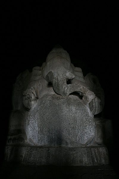 Auch wenn es auf dem Foto nicht abschätzen kann, ist diese Ganesha-Statue leicht sechs Meter hoch. Wenn man davor steht, geht man dem Elefanten höchstens bis zum Bauchnabel.