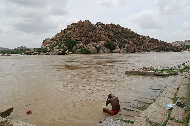 Zur Zeit des Monsuns führt der Fluß, an dem Hampi liegt, so viel Wasser, dass der Fährbetrieb eingestellt werden muss und auch mal der ein oder andere Weg überschwemmt wird.