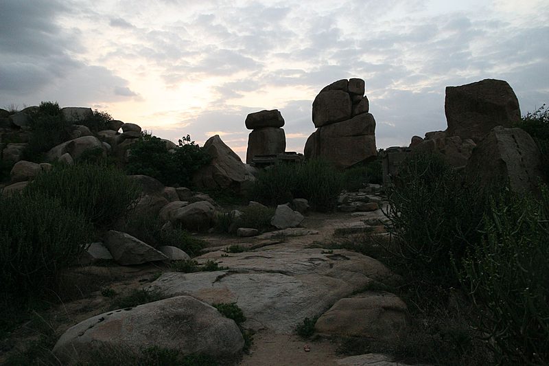 Besonders beeindruckend ist die Landschaft um Hampi, die mit unzähligen riesigen Granitfelsen übersäht ist. Man meint fast, sie müssten von irgendjemand dorthin gelegt worden sein.