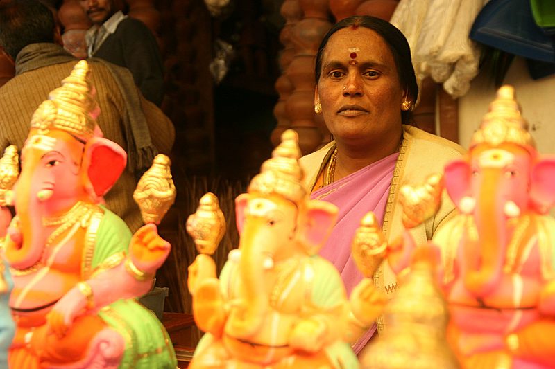 Am Sonntag wurde Ganesh Chaturthi, die Geburt des elefantenköpfigen Gottes Ganesha, gefeiert. Dabei werden tönerne Ganeshafiguren durch die Straßen getragen, bevor man sie zeremoniell in Flüssen, Wasserbecken oder im Meer versenkt. Hier gab es einige der Figuren zu kaufen.
