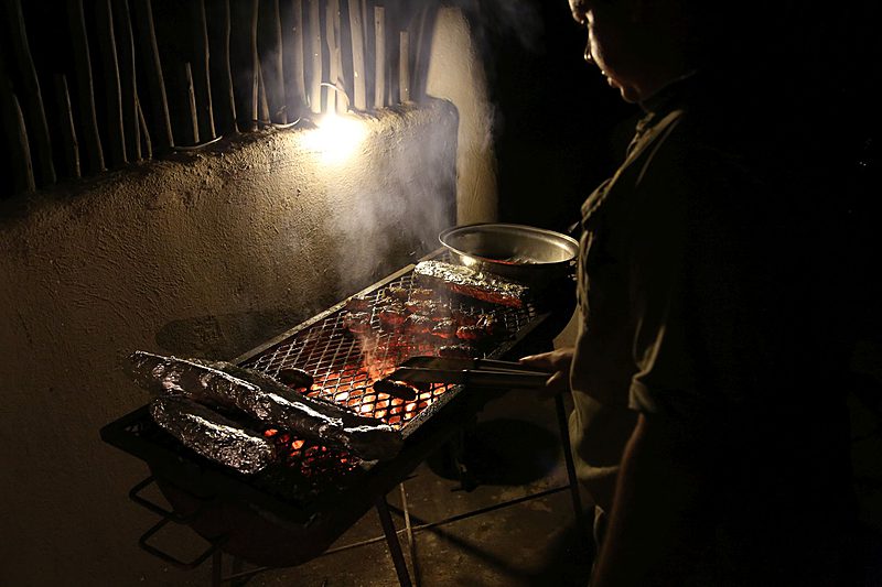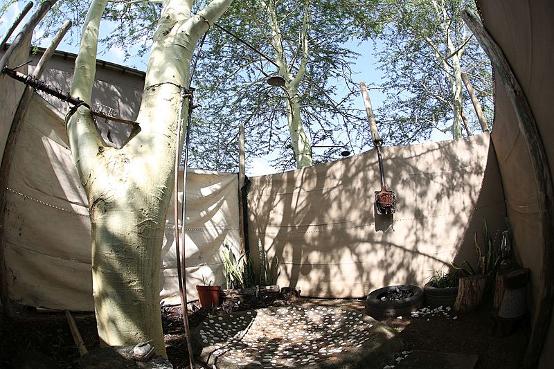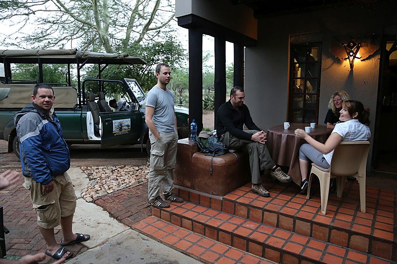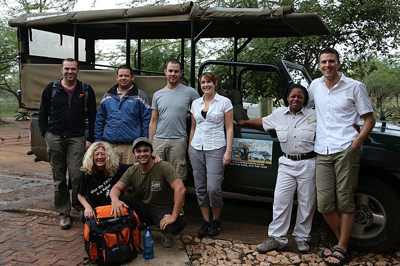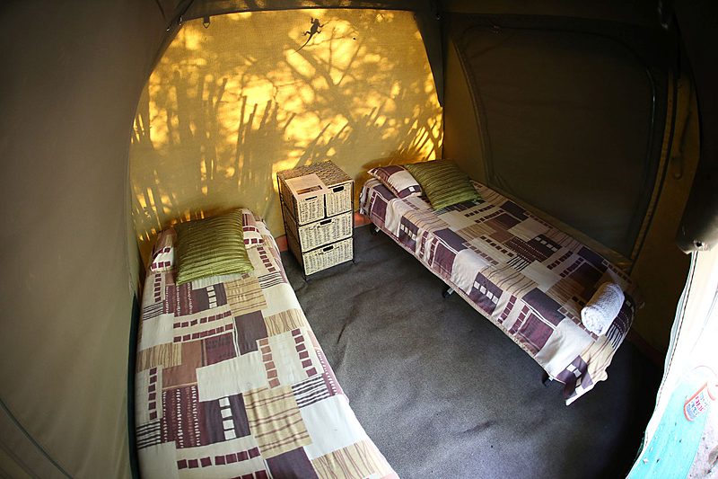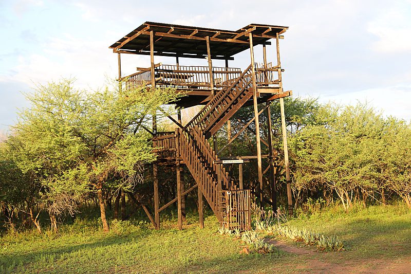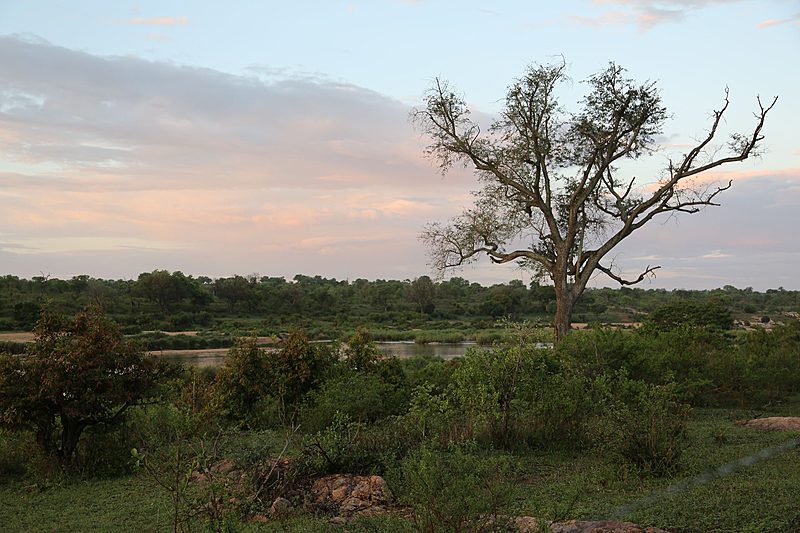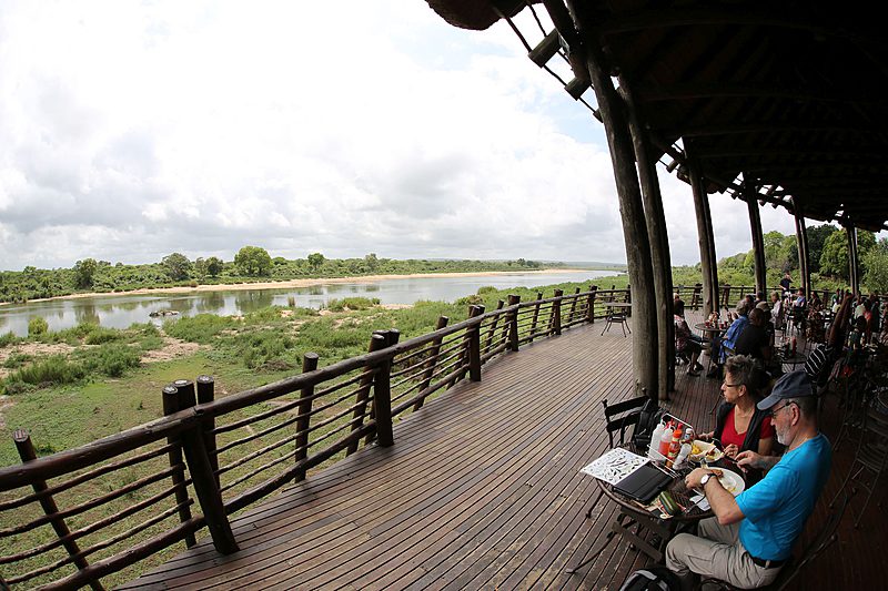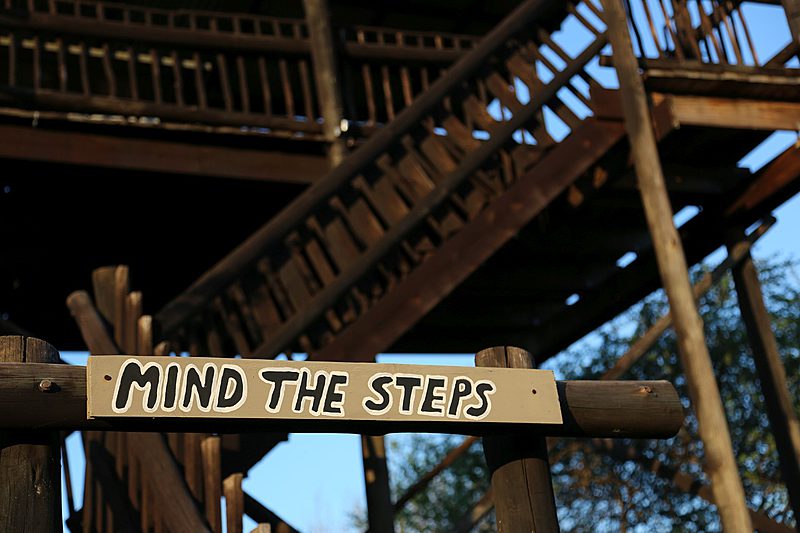 Ausgangspunkt unserer Safari war das Masungulo River Camp von Funky Safari’s direkt am Crocodile River, der entlang der südlichen Grenze des Parks verläuft. Übernachtet wurde in Zelten, die Duschen waren an Bäumen befestigt und das Klo wurde von Planen verdeckt – so schlimm, wie das jetzt klingt, war es aber gar nicht. Besonderes Highlight neben dem leckeren Barbecue war die 15 m hohe Aussichtsplattform, von der aus man das Geschehen im Krüger-Park beobachten konnte.