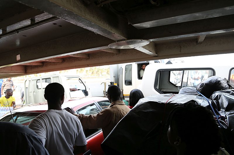 Mit der Fähre kann man nach Catembe direkt auf der gegenüberliegenden Seite der Maputo Bay fahren und einen Blick auf die Skyline der Hauptstadt werfen. Ich hätte wirklich nicht gedacht, wie viele Autos, Pickups und Lastwagen auf so eine kleine Fähre passen.
