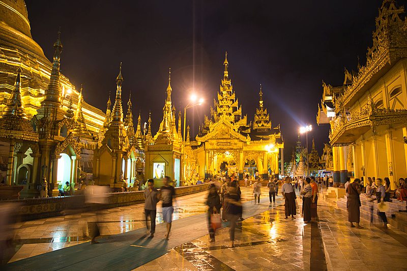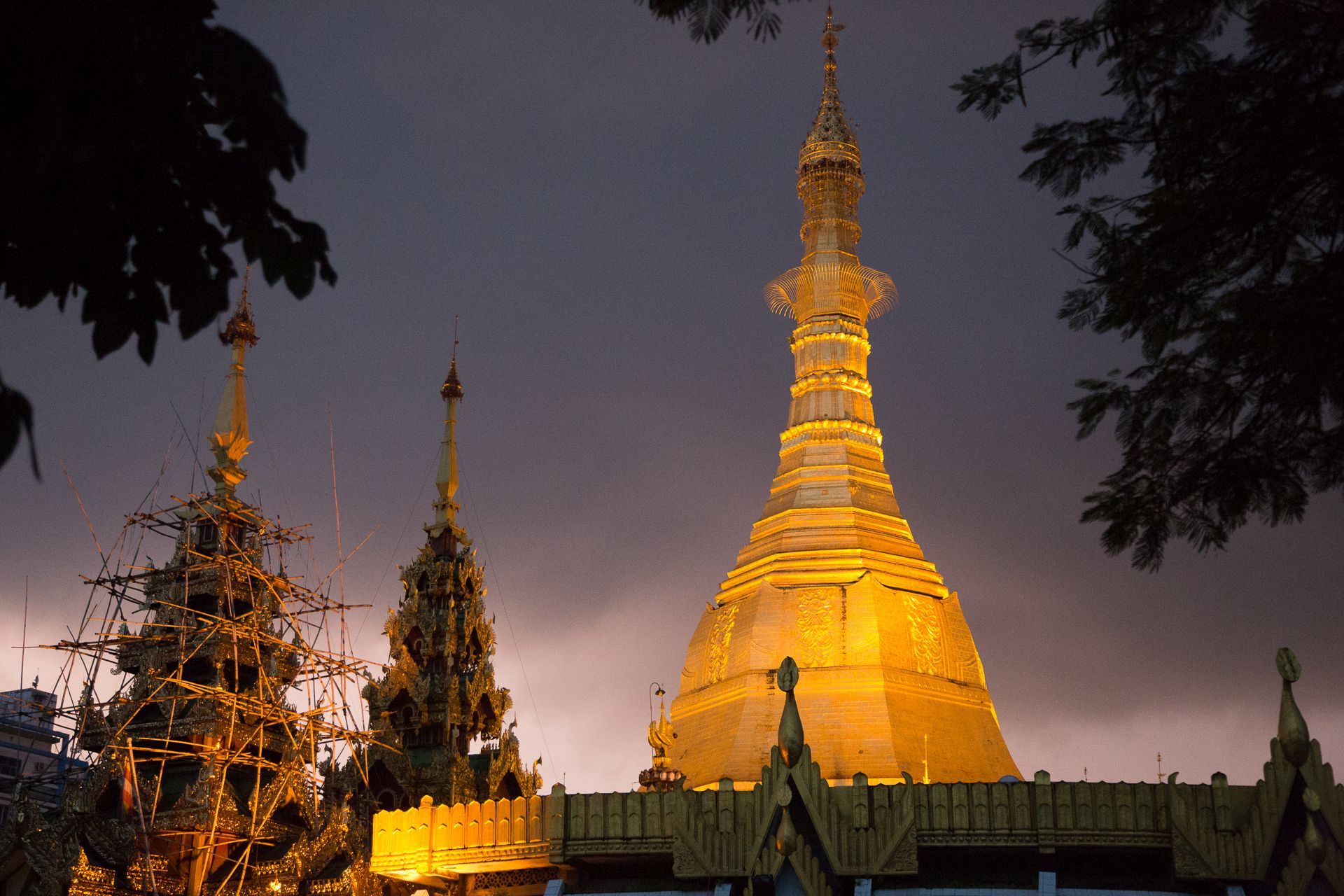 Größte Sehenswürdigkeit der Stadt ist die Shwedagon-Pagode. Die gilt als das Wahrzeichen des Landes und ist eine der berühmsten Pagoden der Welt. Das Besondere ist neben der Höhe von derzeit 98 m (die Pagode wurde mehrmals zerstört, neu aufgebaut und vergrößert), dass sie mit echten Goldplatten und Blattgold geschmückt ist, deren Gewicht auf insgesamt rund 60 Tonnen geschätzt wird. An der Spitze befindet sich schließlich noch ein 76-karätiger Diamant.