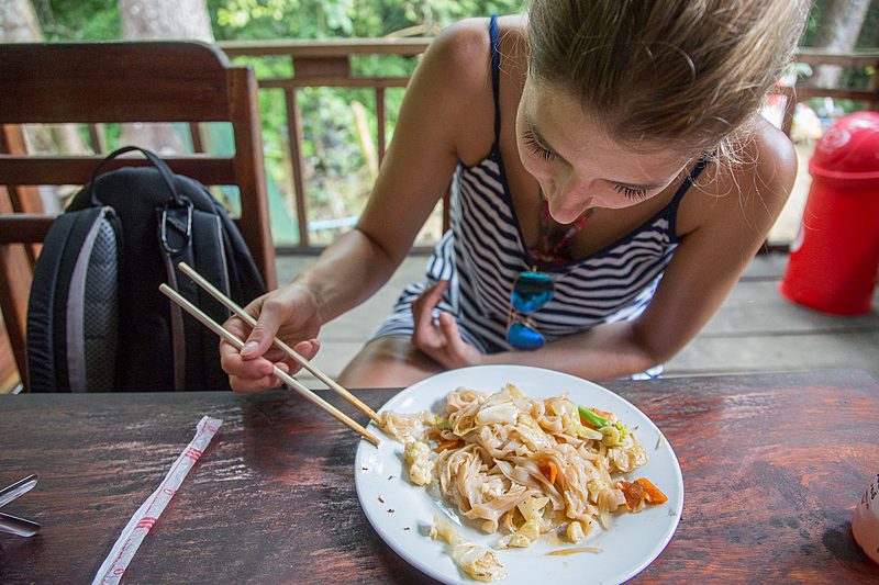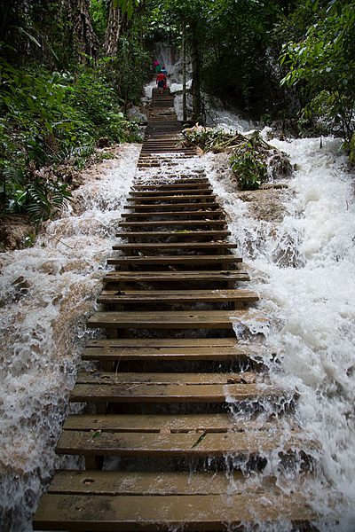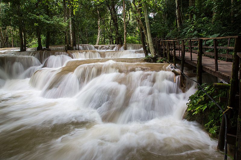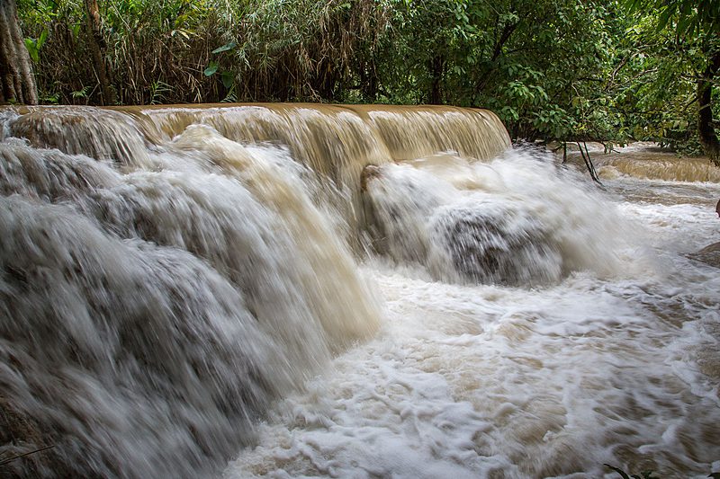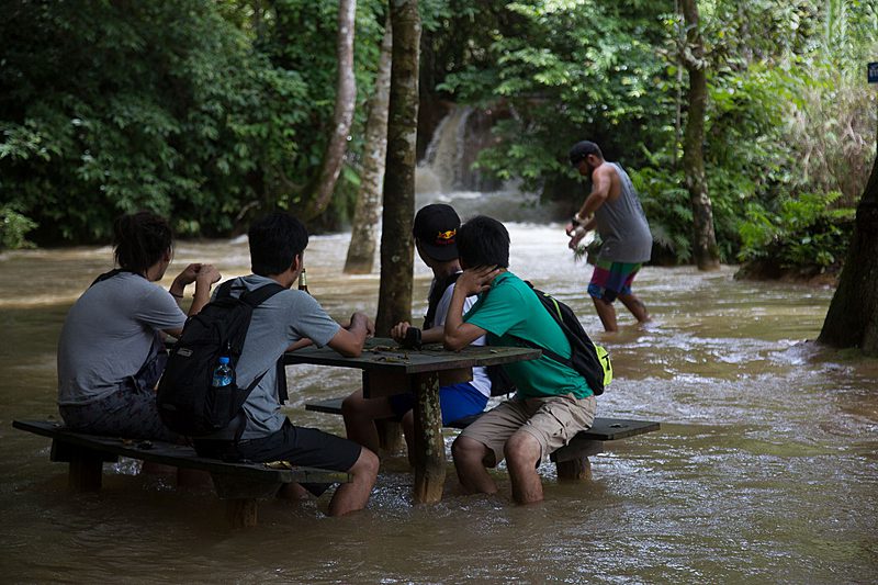 Um die Stadt befinden sich mehrere Höhlen und Wasserfälle, die jeweils mit dem Motorroller oder dem Boot erreichbar sind. Da wir in letzter Zeit schon in einige Höhlen hinabgestiegen sind, haben wir uns diesmal auf die Wasserfälle beschränkt. Die führen während der Regenzeit allerdings so viel Wasser, dass es an den ein oder anderen Stellen schon mal zu kleinen Überschwemmungen kommen kann.