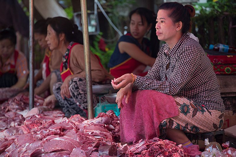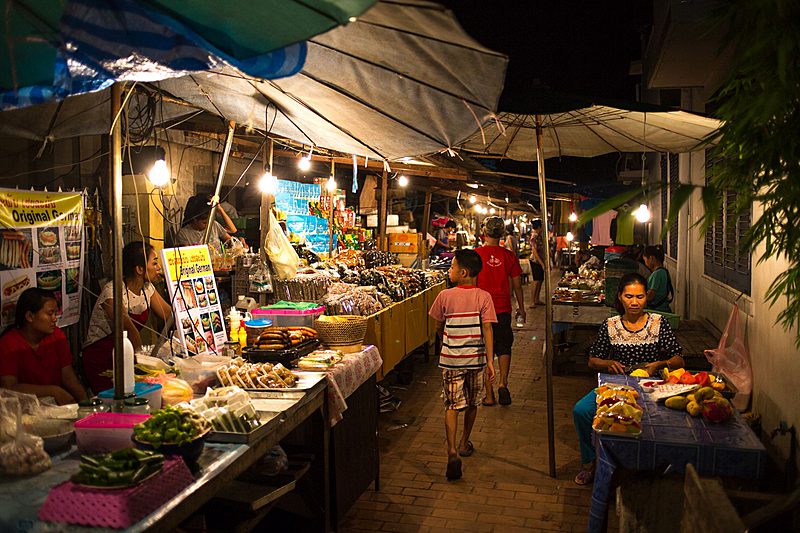 Luang Prabang ist ein Handelszentrum für Reis, Kautschuk und Teakholz und es werden etliche handwerkliche Produkte wie Holzarbeiten, Textilien und Papier hergestellt. Dementsprechend gibt es hier auch zahlreiche Märkte. Sehenswert waren vor allem der allmorgentliche Morning Food Market, auf dem so ziemlich alles verkauft wird, was zumindest theoretisch essbar erscheint – einschließlich Eichhörnchen, Larven, Schlangen und Kröten – und der jeden Abend aufgebaute Night Market.